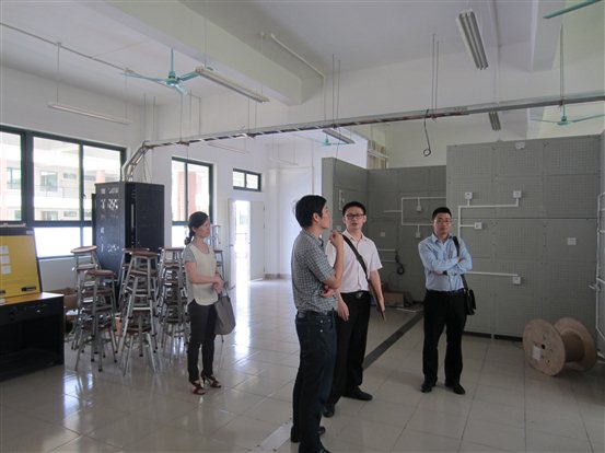佛山职业技术学院电子信息系副主任侯进旺副教授及计算机教研室主任黄雄波副教授热情接待我系人员,该系物联网应用技术专业相关人员参加了交流座谈会。侯进旺副主任首先介绍了该系的专业建设情况;黄雄波、肖志良副教授重点介绍了物联网应用技术专业的建设思路、人才培养方案和实验室建设情况;随后,双方就师资队伍建设、人才培养方案、课程建设、教材建设、实验室建设等情况进行了深入的交流和探讨。 会后,参观了该系的物联网实训室、研发中心等,了解该中心的结构、功能和运行机制。