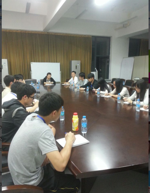 2014年4月8日19:00,由计算机工程系辅导员王洁老师主持的系学生会部长以上干部座谈会在8A406准时召开,出席本次会议的有主席团成员和各部部长共17人。