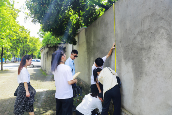 在宣传干事王伟文和乡村振兴干事王志鹏同志的陪同下,学院“非遗焕新”三下乡社会实践团队成员实地考察了中坑村的房屋风格、村庄布局、人文风俗和整体风貌,为本次“非遗焕新”社会实践的墙绘工作进行了选址和测量。