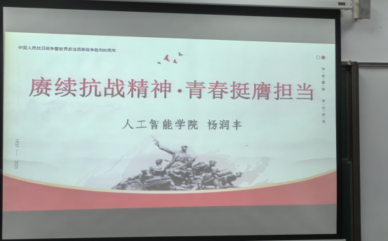 在“赓续抗战精神 谱写青春华章”这一部分,杨院长紧密结合当下时代背景和人工智能学院的专业特色,鼓励同学们以抗战精神为指引,坚定理想信念,勇担时代重任。他强调,作为新时代的大学生,尤其是人工智能领域的学子,肩负着推动科技进步、助力国家发展的历史使命。同学们要厚植爱国情怀,将个人的命运与国家和民族的命运紧密相连,让爱国成为青春最亮丽的底色。