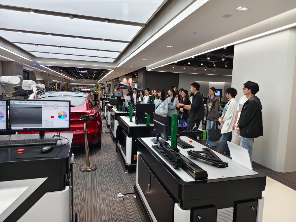 在奥普特公司精心打造的全场景式机器视觉应用展示中心,师生们近距离参观了涵盖工业相机、智能镜头、图像处理系统及3D传感器在内的完整产品线。张祐荣工程师结合丰富的行业实践经验,为同学们生动讲解了机器视觉技术在工业制造精密检测、电子元器件质量管控、物流智能分拣追踪等多个领域的实际应用案例。通过现场演示与深入浅出的剖析,高精度、高效率的视觉解决方案如何赋能自动化生产、提升智能制造水平,给同学们留下了深刻印象。