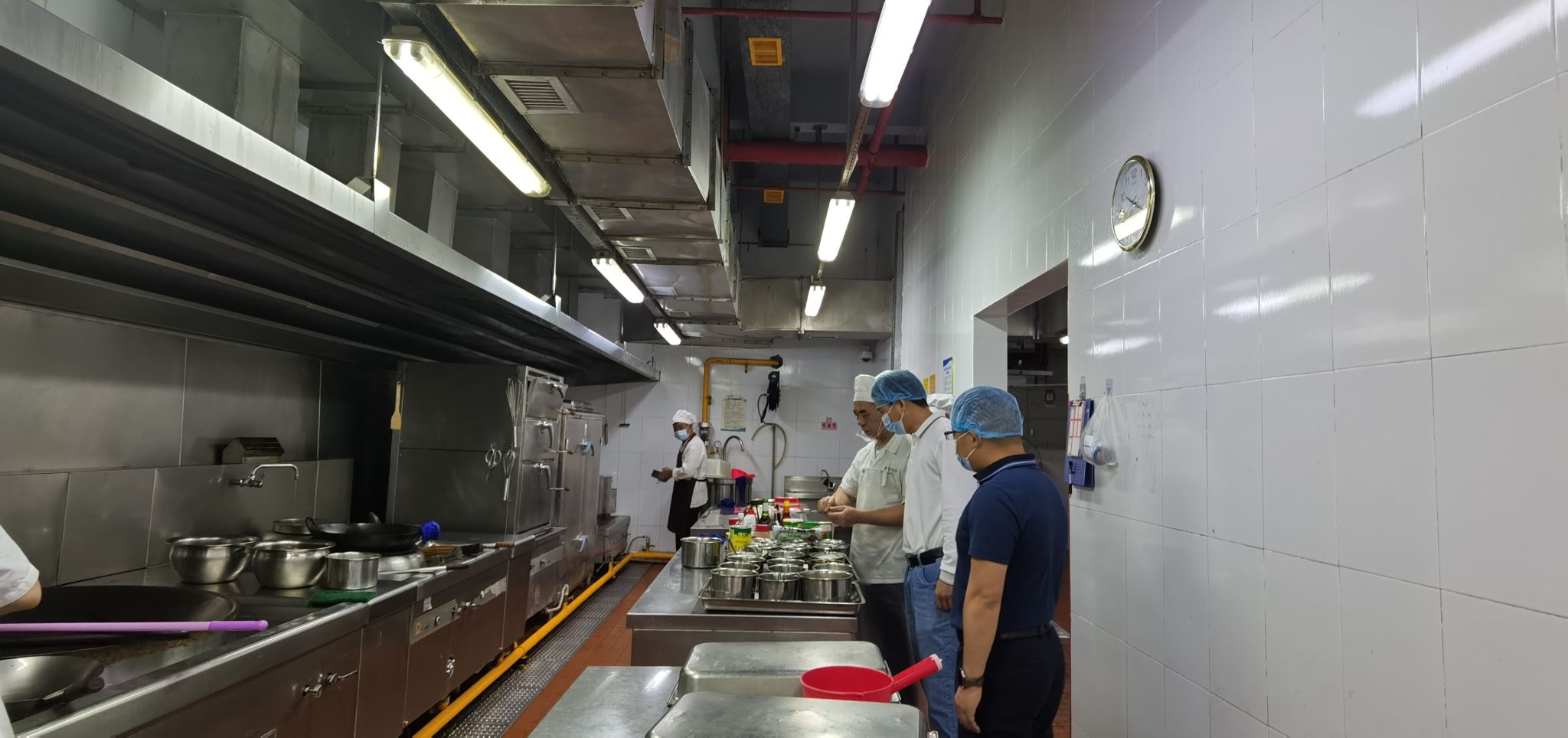 陈俞强书记一行首先检查了校区食堂食品安全工作,对厨房环境卫生、食材存放、食品质量、工作人员操作规范等进行了检查。