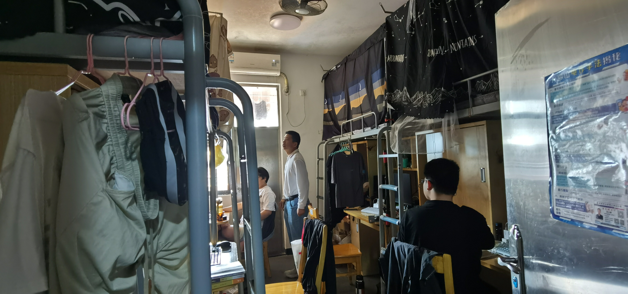 接着来到匠心楼,了解入住学生基本情况,查看了学生进出登记表;重点检查了学生宿舍内有无使用大功率电器、有无乱接电线以及其是否存在其他安全隐患等问题。