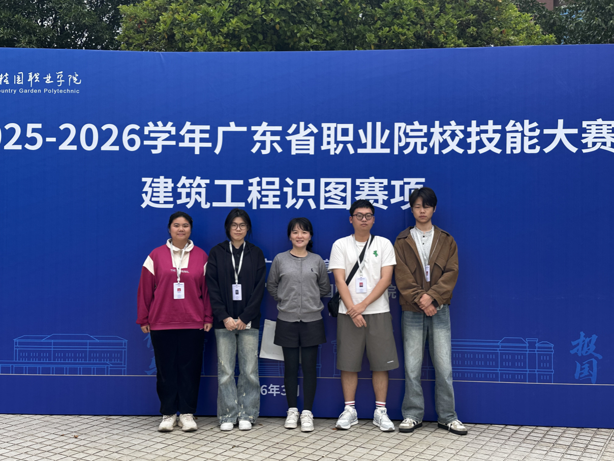 本次大赛由广东省教育厅主办,聚焦建筑业转型升级和工业化、智能化、数字化、绿色化发展新趋势,全面考核选手在建筑工程施工图识读、CAD绘图及综合职业素养等方面的能力。赛项设置技能测试和综合展示两大模块,其中技能测试包含土建工程施工图识读、建筑专业施工图绘图、结构专业施工图绘图三项任务,综合展示要求参赛队在10分钟内对竞赛内容与过程进行现场讲解。比赛中,我校参赛团队合理分工、沉着应战,严谨完成识图答题与CAD绘图任务,综合展示环节逻辑清晰、表达流畅,充分展现了我校学子扎实的专业技能和良好的职业素养。